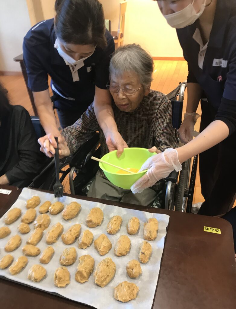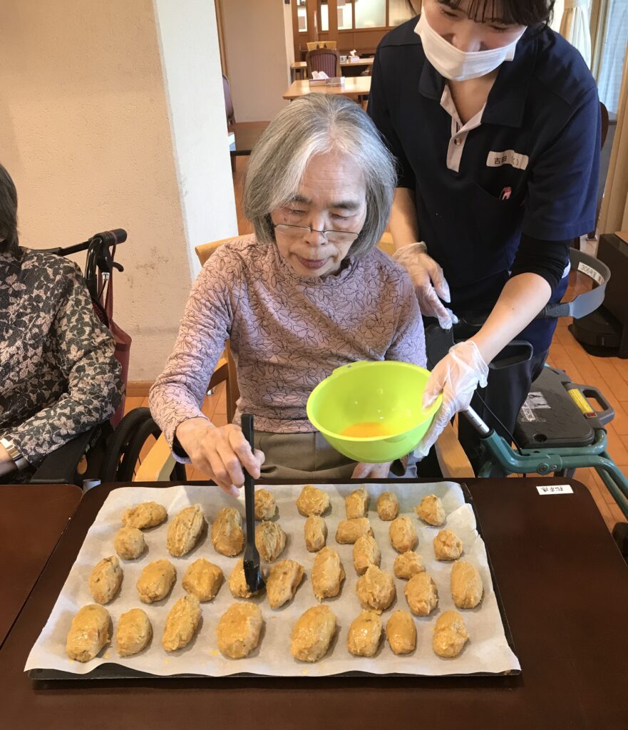 入居者様に形を作ってもらい最後に卵黄を塗りました。