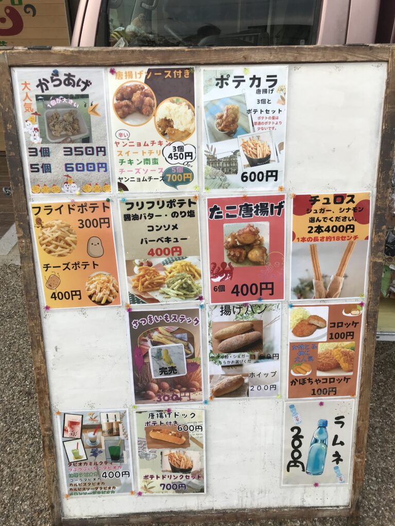 豊富なメニューを取り揃えおり、フライドポテトやクレープなどメニューは豊富です😊からあげが美味しいとお客様よりのおススメをお伺いしました😄