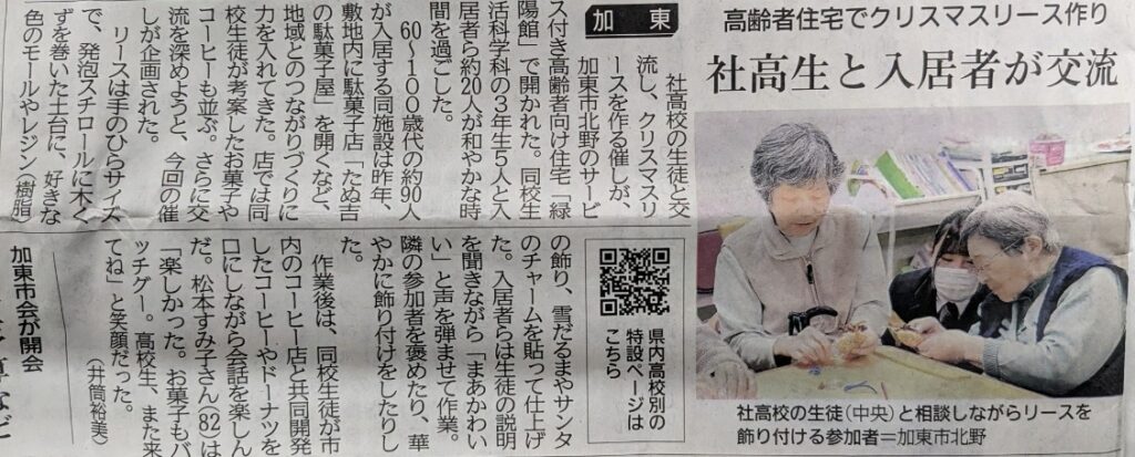 当館にてレクリエーションにて県立社高校とのコラボイベントが2025年12月3日神戸新聞にて掲載されました📰