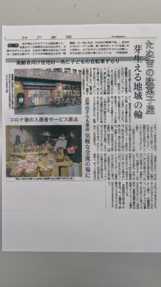 2026年1月26日の神戸新聞にてたぬ吉の駄菓子屋が掲載されました📰